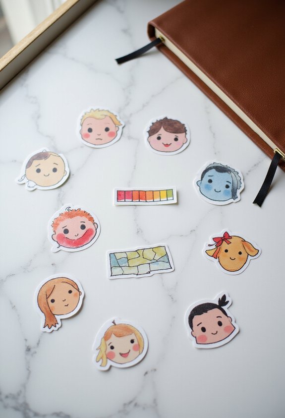 You’ve explored ten creative sticker options that transform mood tracking into visual storytelling. Choose designs that genuinely resonate with your emotional vocabulary and aesthetic preferences. Start with one or two sets you’re drawn to, then expand your collection as your journaling practice deepens. Remember, consistent tracking matters more than perfect documentation. Your bullet journal becomes a powerful self-awareness tool when you honestly reflect on daily feelings. These stickers simply make that reflection more engaging and sustainable.