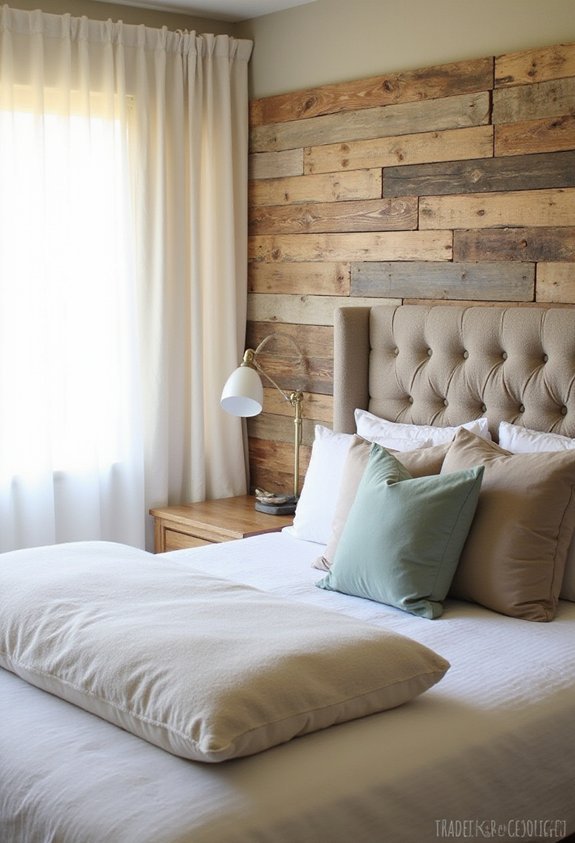 You’ve got seven budget-friendly headboard ideas that’ll transform your bedroom without draining your wallet. Each project stays under $50 and takes just a weekend to complete. Pick the style that matches your space—whether that’s rustic wood, bohemian macramé, or geometric patterns. Gather your materials, follow the steps, and you’ll create a custom focal point. Your bedroom deserves this upgrade, and you don’t need professional skills to pull it off.