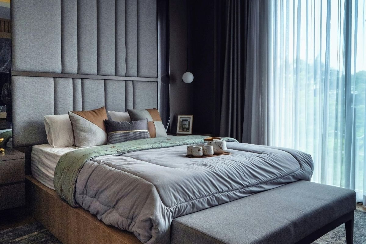 What Is the Ideal Bedroom Size for a Statement Grey Headboard?