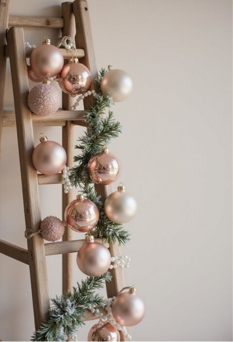 Forget boring ornament hangers—a wooden ladder is basically the coolest way to show off your pink baubles without cramming them all onto one sad little tree branch. I grabbed a six-foot ladder from my garage and leaned it against my living room wall. Then I draped rose-gold garland around the rungs. Next came the fun part: hanging ornaments in different shades of pink. I used blush, mauve, and hot pink for variety. The ladder creates this gorgeous vertical display that catches everyone’s eye instantly. It’s like a Christmas tree had a fancy makeover. You can space ornaments out so each one gets its moment to shine. Plus, you’re not wrestling with tangled branches. Your back’ll thank you. This setup screams elegant without any actual screaming required.